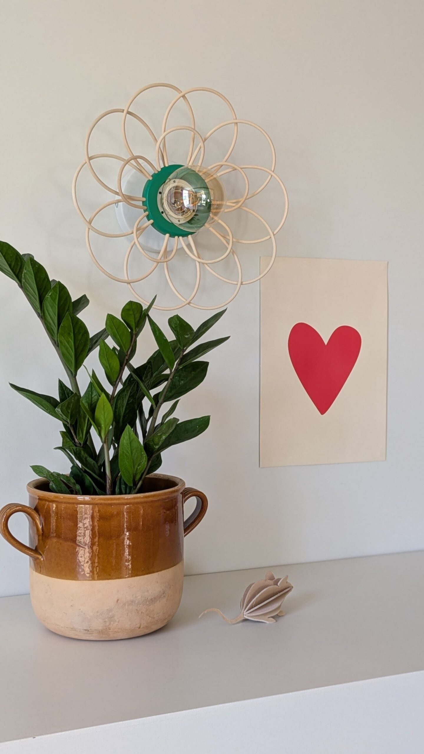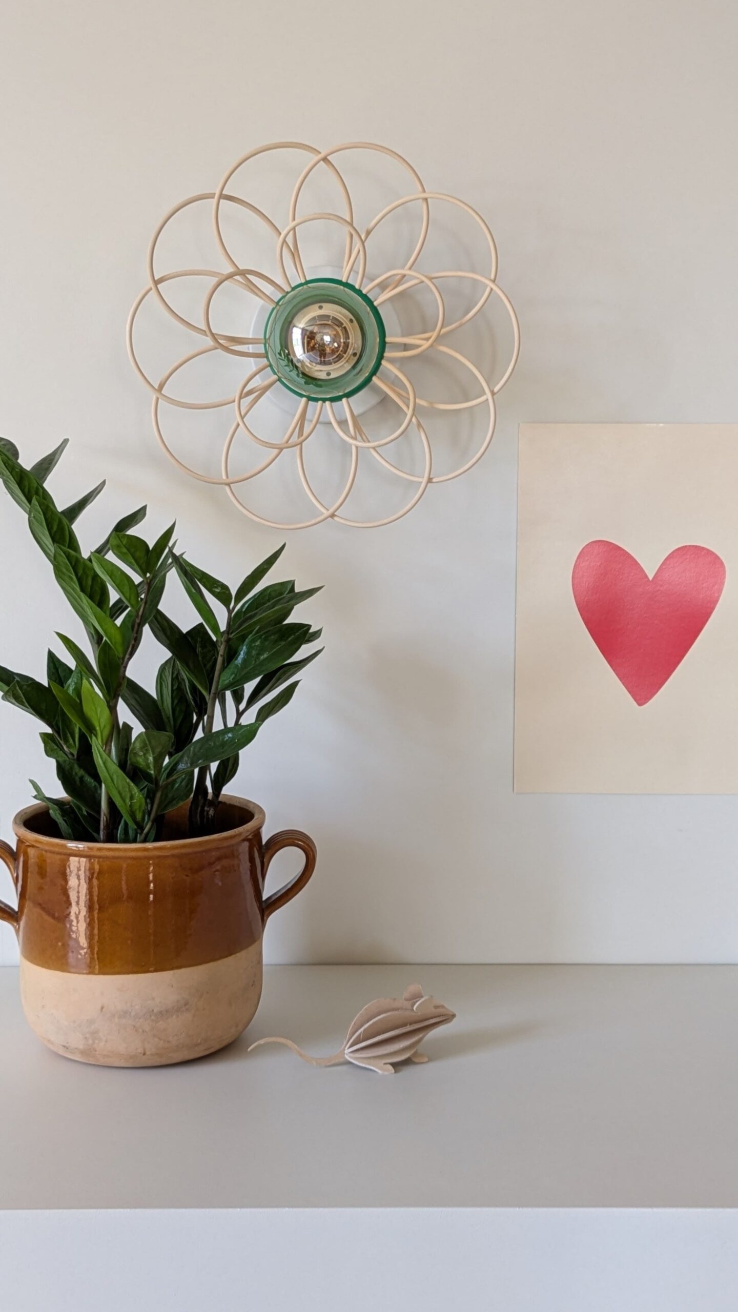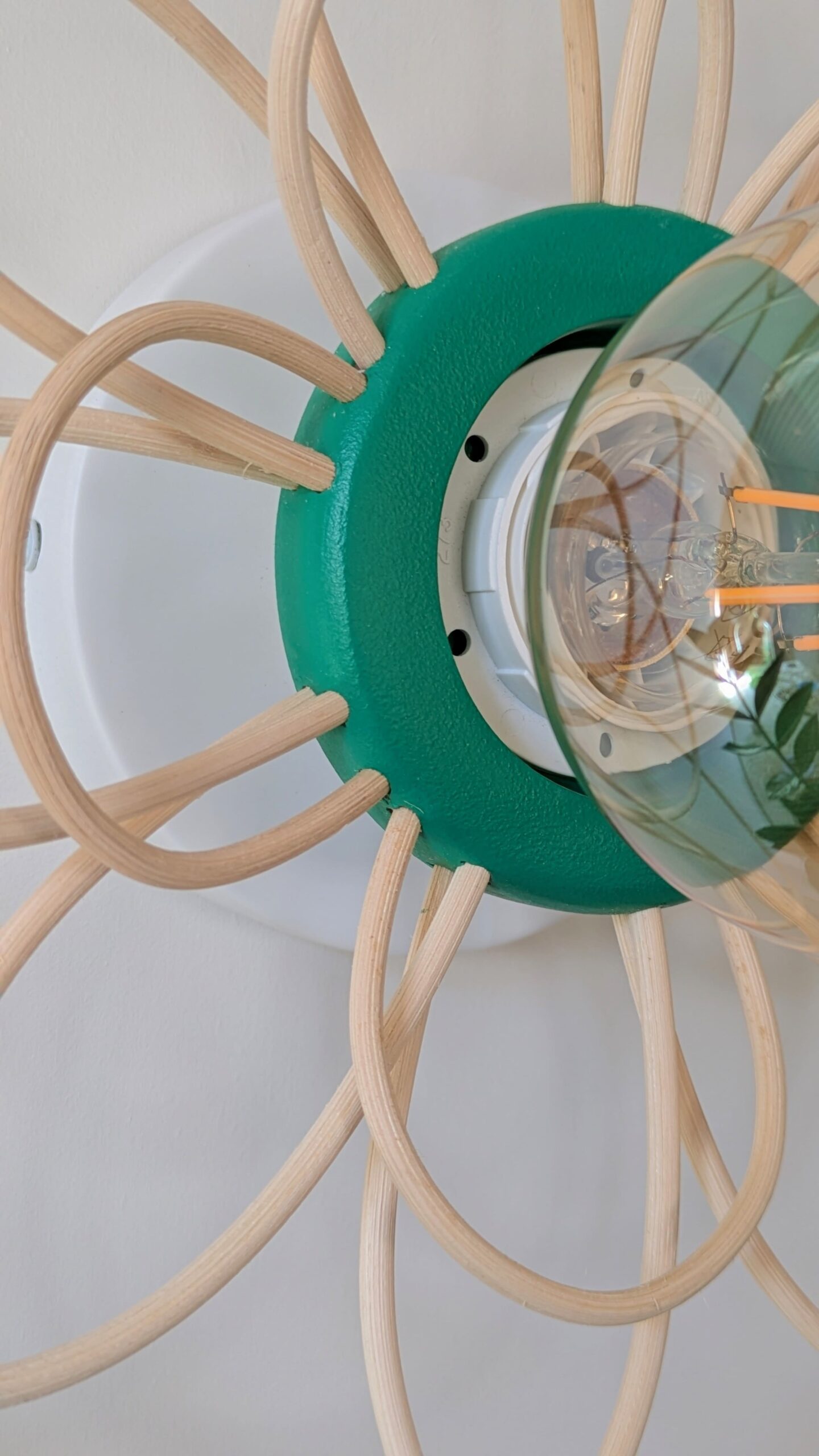 Luminaire artisanal modulable en bois et rotin. 🌿 Ce modèle peut devenir suspension, applique (murale ou nomade) ou plafonnier.