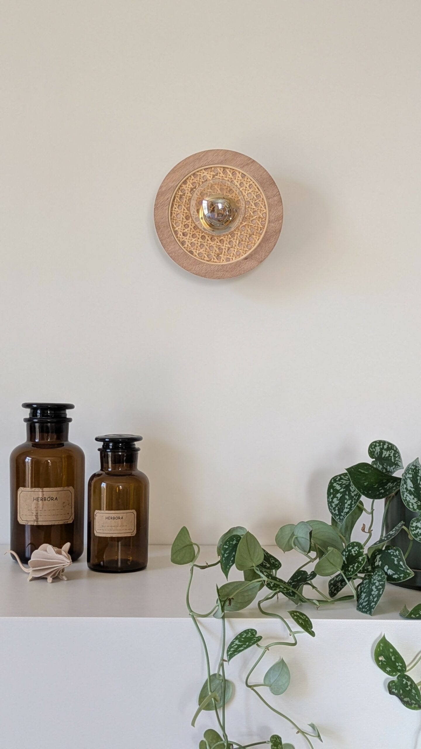• Applique nomade : L’applique nomade se compose d’une douille E27 ( IP20), d’un pavillon métal, d’un câble en tissu de 200cm, d’un interrupteur et d’une fiche.